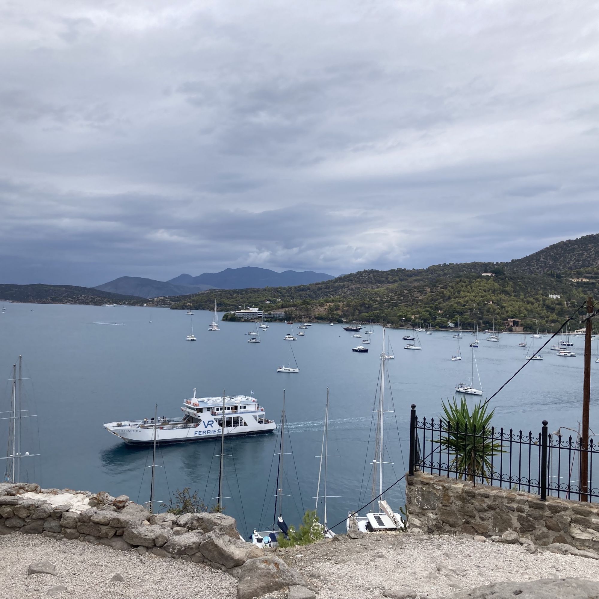 From Aegina, we caught a ferry to Poros (about an hour’s journey). Watching the island appear as we approached from the ferry deck was simply beautiful.